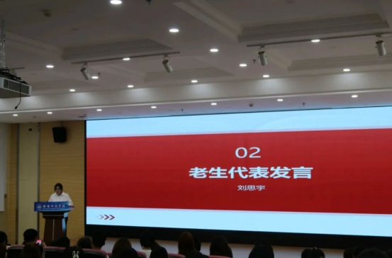在经验分享环节,2024级学生代表刘思宇结合自身经历,与新生分享大学学习与生活的经验,传递温暖指引;新生代表邵诗懿则表达了对学前教育专业的热爱与对大学生活的憧憬,也期待未来在朝阳师院这片沃土上把青春的答卷写得扎实、写得热烈、写得坚定。