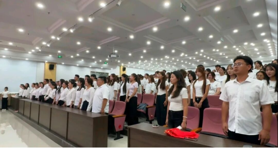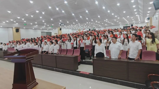 最后,全体师生起立合唱《歌唱祖国》,嘹亮的歌声中满含对祖国的敬意与对未来的期许,为开学典礼画上圆满句号。