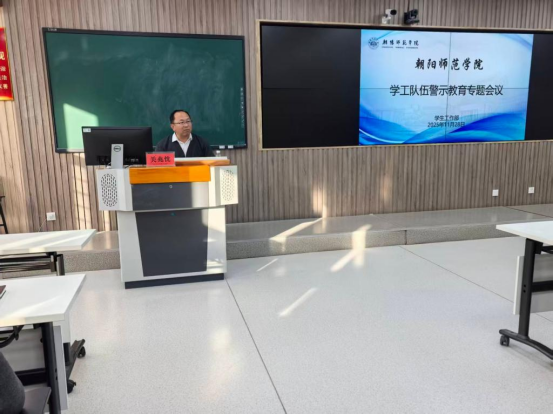 关兆忱首先阐释了召开此次警示教育课的目的和意义,强调学校学工干部尤其是辅导员既是中共党员,又是负责学生思想政治教育、日常管理、就业指导、心理健康以及党团建设等方面工作的公职人员,必须恪守爱国守法、敬业爱生、育人为本、终身学习、为人师表的职业守则,始终坚持以学生为中心的现代核心教育理念,自觉践行“学高为师、身正为范;学为人师、行为世范”要求,时刻铭记教书育人使命担当,不断提高学生思想水平、政治觉悟、道德品质、文化素养,引导学生树立正确的人生观、世界观、价值观,全面助力学生成长、推动社会进步。